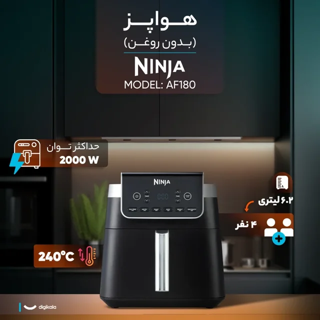 هواپز نینجا مدل AF180 با ظرفیت 6.2 لیتر، مناسب برای تهیه غذاهای سالم و کمچرب است. فناوری پیشرفته هواپز این محصول، امکان پخت سریع و یکنواخت را فراهم کرده و طراحی کاربرپسند آن استفاده آسان را تضمین میکند. گزینهای عالی برای آشپزی روزانه.